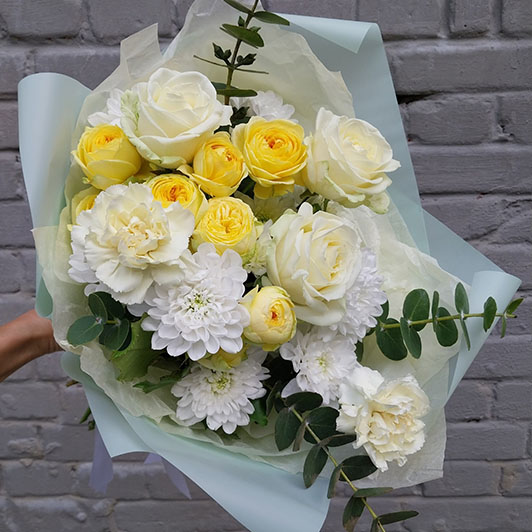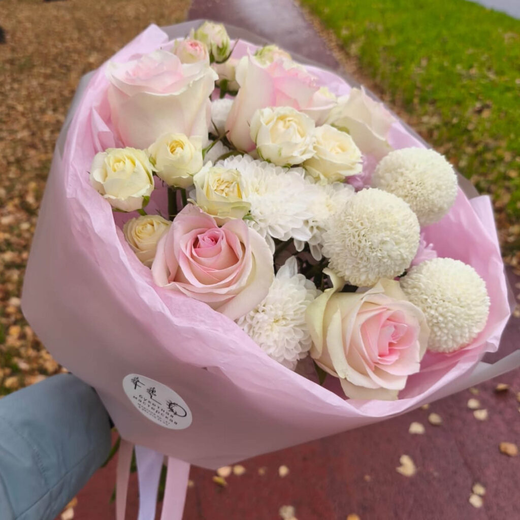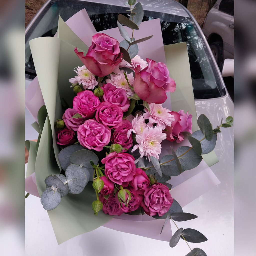 Состав б укета: роза ,роза кустовая, диантусы, хризантема , эвкалипт. От 4 000 Р