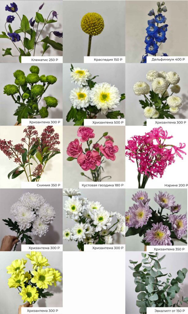СОБИРАЕМ БУКЕТЫ ИЗ НАЛИЧИЯ, ПРЕДСТАВЛЕННОГО НА ВИТРИНЕ (ЦВЕТОК / ЦЕНА)