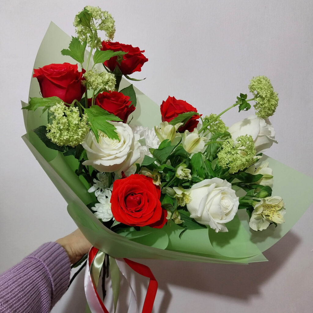 Состав букета: роза, вибурнум, хризантема, альстромерия. От 4 000 Р