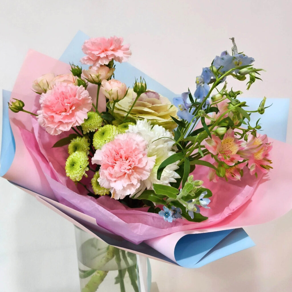 Состав букета: роза, брасика, дельфиниум, хризантема, диантусы, альстромерия3 000 Р. Соберем и доставим в течении часа.