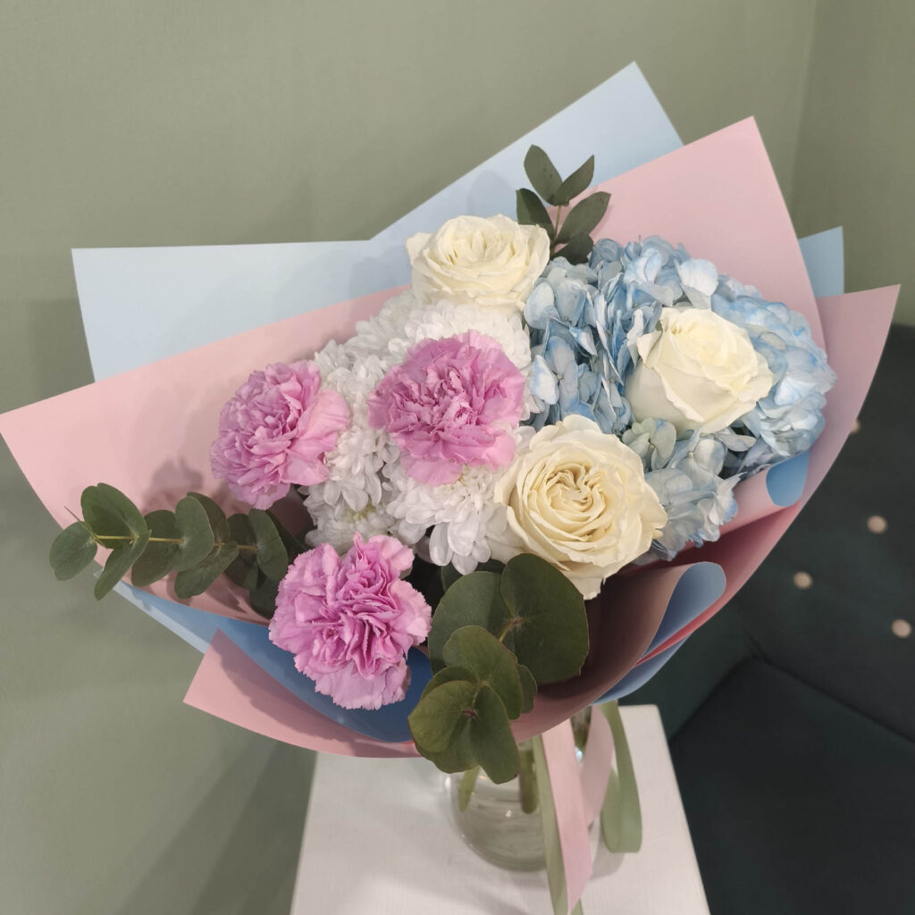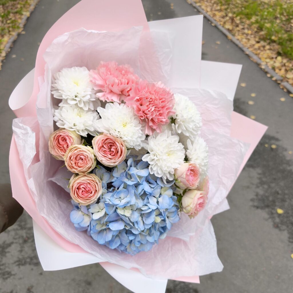 Состав букета: гортензия, роза, диантус, альстромерия, хризантема. От 5 000 Р